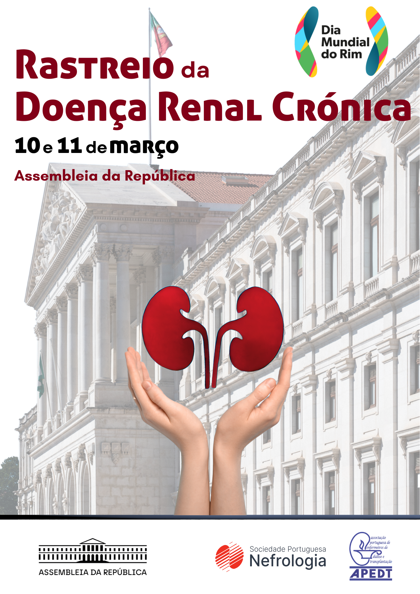 A SPN - Sociedade Portuguesa de Nefrologiae a APEDT - Associação Portuguesa de Enfermeiros de Diálise e Transplantação assinalam o Dia Mundial do Rim com um Rastreio de Doença Renal Crónica na Assembleia da República, a decorrer dias 10 e 11 de março.